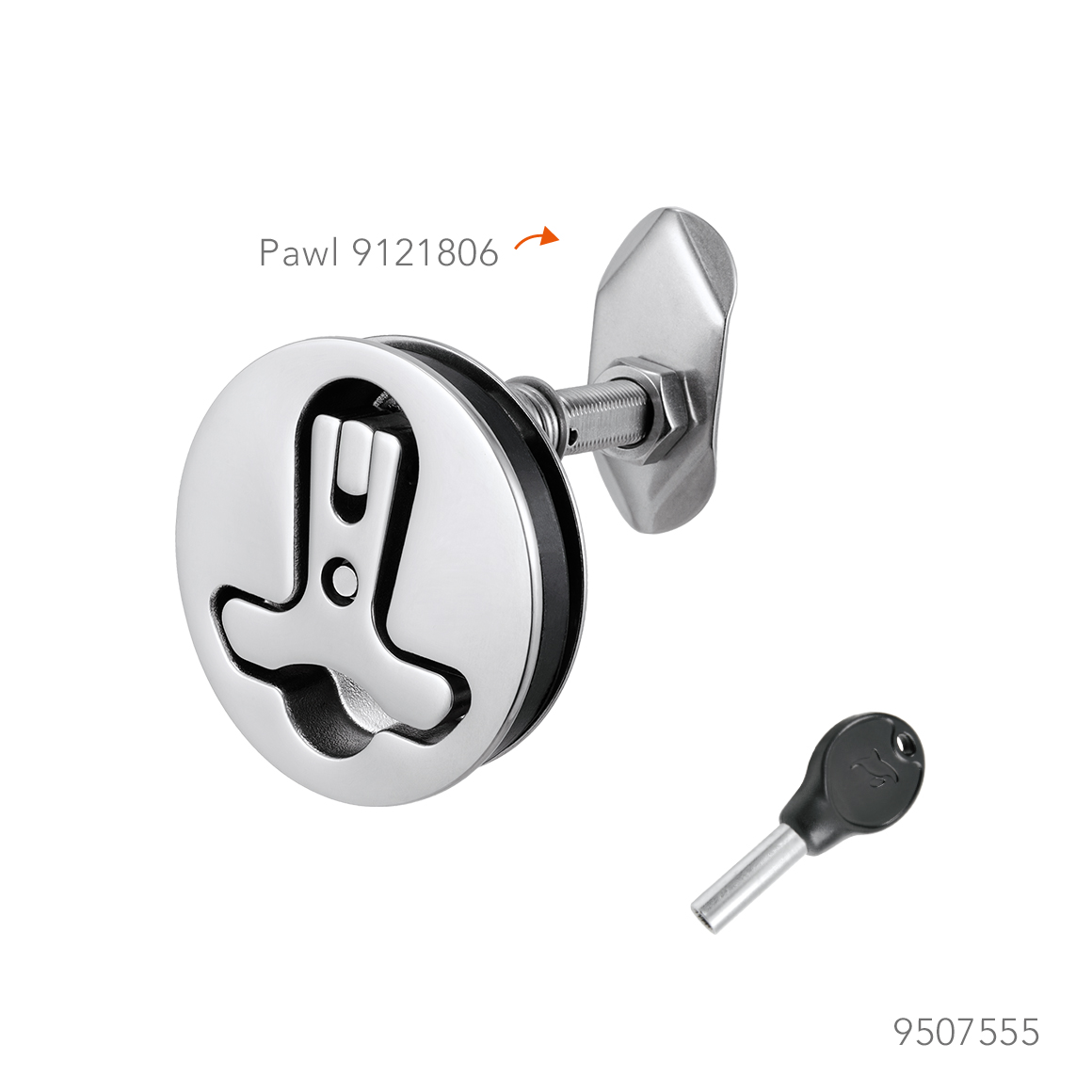 - When handle is pressed down, pawl lifts to compress hatch, hence ideal for gasketed hatches.